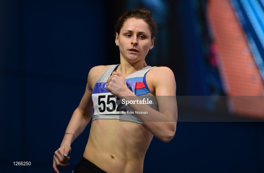 5 February 2017; Sinead Denny of Dundrum South Dublin A.C., Co. dUBLIN competing in the womens 400m during the Irish Life Health AAI Indoor Games at Sport Ireland National Indoor Arena in Abbotstown, Dublin. Photo by Eóin Noonan/Sportsfile