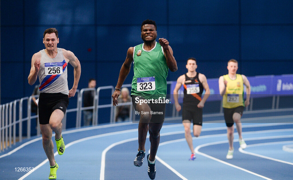5 February 2017; Brandon Arrey of Blarney/Inniscara AC, Co Cork, on his way to winning the senior men's 200m heat 1 during the Irish Life Health AAI Indoor Games at Sport Ireland National Indoor Arena in Abbotstown, Dublin. Photo by Sam Barnes/Sportsfile