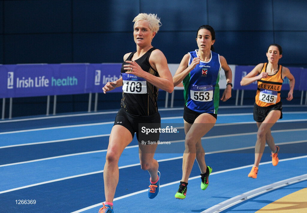 5 February 2017; Annmarie McGlynn of Letterkenny AC, Co Donegal, competing in the senior women's 1500m during the Irish Life Health AAI Indoor Games at Sport Ireland National Indoor Arena in Abbotstown, Dublin. Photo by Sam Barnes/Sportsfile