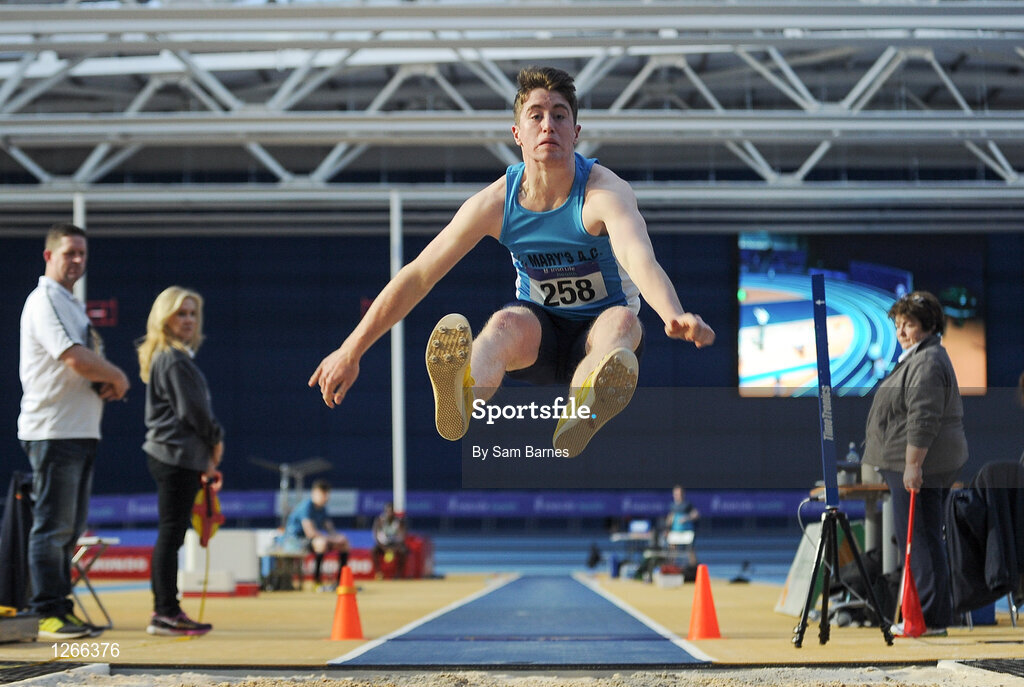 5 February 2017; Darragh Minter of St Mary's AC, Co Clare competing in the senior men's long jump during the Irish Life Health AAI Indoor Games at Sport Ireland National Indoor Arena in Abbotstown, Dublin. Photo by Sam Barnes/Sportsfile