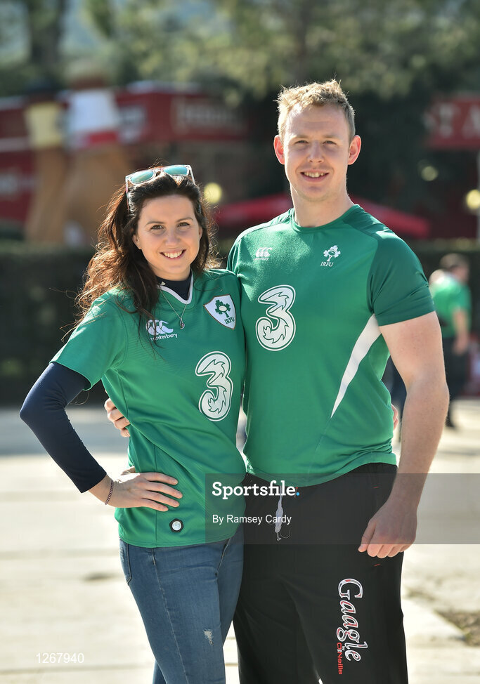 11 February 2017; Ireland supporters Maria Nugent and David Doyle both from Armagh ahead of Ireland's RBS Six Nations Championship game against Italy at the Stadio Olimpico, in Rome. Photo by Ramsey Cardy/Sportsfile