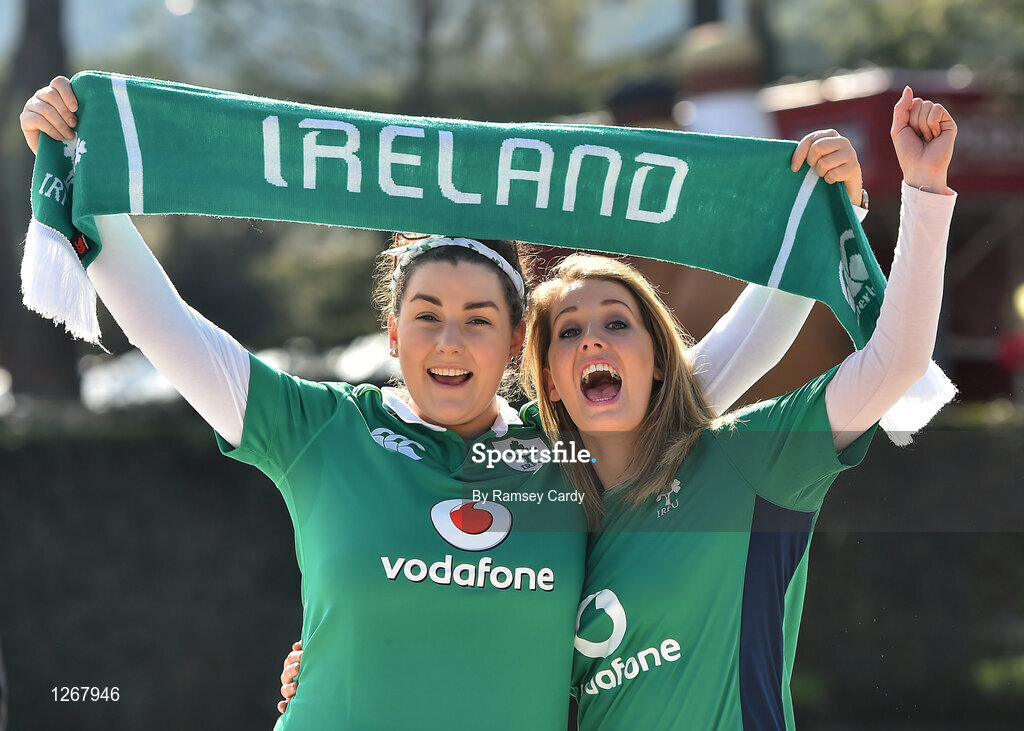 11 February 2017; Ireland supporters Michelle Hennessy, left, from Ennis, Co. Clare and Moira Dineen, from Newcastle West, Co. Limerick ahead of the RBS Six Nations Rugby Championship match between Italy and Ireland at the Stadio Olimpico in Rome, Italy. Photo by Ramsey Cardy/Sportsfile