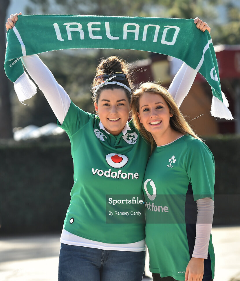 11 February 2017; Ireland supporters Michelle Hennessy, left, from Ennis, Co. Clare and Moira Dineen, from Newcastle West, Co. Limerick ahead of the RBS Six Nations Rugby Championship match between Italy and Ireland at the Stadio Olimpico in Rome, Italy. Photo by Ramsey Cardy/Sportsfile