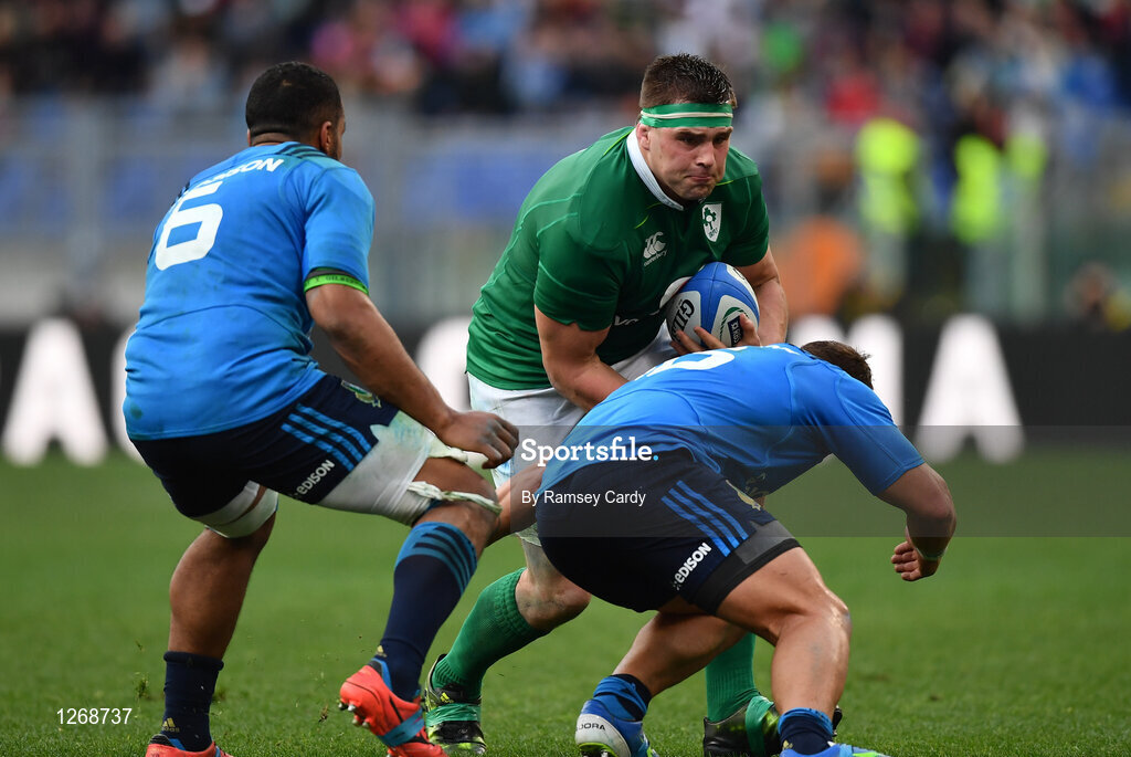 11 February 2017; CJ Stander of Ireland is tackled by Ornel Gega of Italy during the RBS Six Nations Rugby Championship match between Italy and Ireland at the Stadio Olimpico in Rome, Italy. Photo by Ramsey Cardy/Sportsfile
