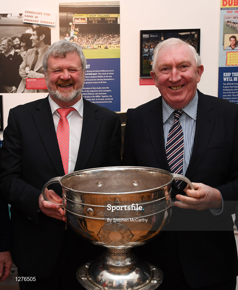 1 March 2017; In attendance at the launch of ‘New Ireland presents Heffo’s Army’, a new exhibition in the Little Museum of Dublin is Kerry GAA legend Eóin ‘The Bomber’ Liston, left, and Dublin GAA legend Sean Doherty. The former players discussed their memories of the ‘Heffo’ era at the special launch event in front of attendees including GAA Director General, Páraic Duffy and the Lord Mayor of Dublin Brendan Carr at The Little Museum of Dublin in Dublin. Photo by Stephen McCarthy/Sportsfile