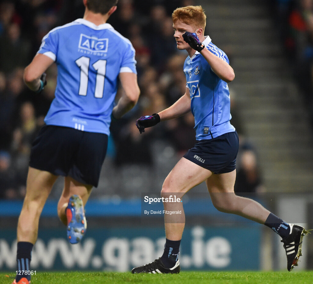 4 March 2017; Conor McHugh of Dublin celebrates after his side's first goal during the Allianz Football League Division 1 Round 4 match between Dublin and Mayo at Croke Park in Dublin. Photo by David Fitzgerald/Sportsfile