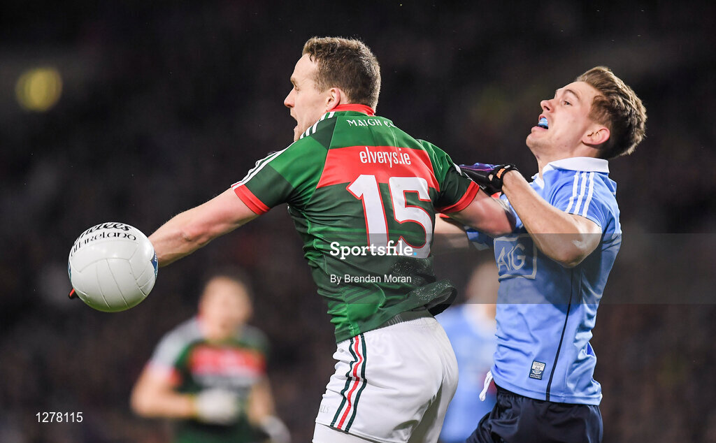 4 March 2017; Andy Moran of Mayo in action against Michael Fitzsimons of Dublin during the Allianz Football League Division 1 Round 4 match between Dublin and Mayo at Croke Park in Dublin. Photo by Brendan Moran/Sportsfile