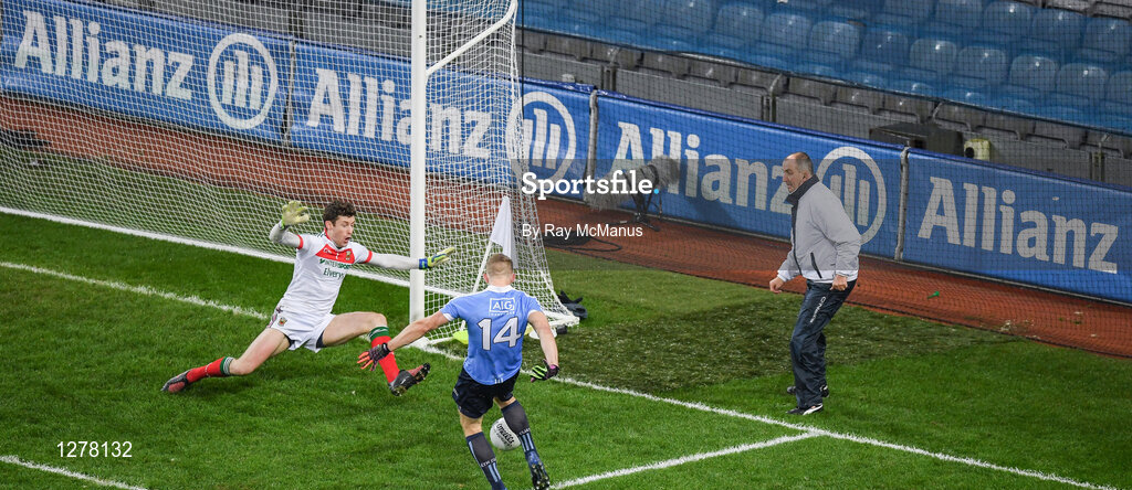 4 March 2017; Eoghan O'Gara of Dublin shoots wide and past David Clarke of Mayo during the Allianz Football League Division 1 Round 4 match between Dublin and Mayo at Croke Park in Dublin. Photo by Ray McManus/Sportsfile