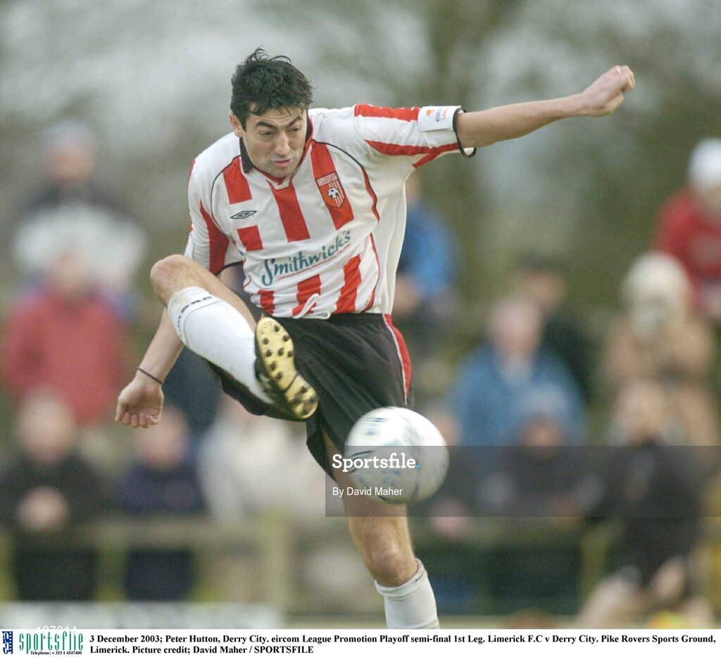 3 December 2003; Peter Hutton, Derry City. eircom League Promotion Playoff semi-final 1st Leg. Limerick F.C v Derry City. Pike Rovers Sports Ground, Limerick. Picture credit; David Maher / SPORTSFILE