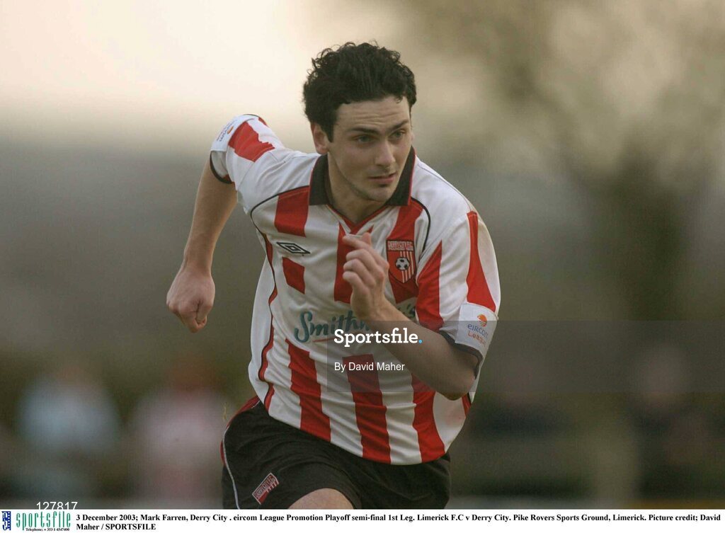 3 December 2003; Mark Farren, Derry City . eircom League Promotion Playoff semi-final 1st Leg. Limerick F.C v Derry City. Pike Rovers Sports Ground, Limerick. Picture credit; David Maher / SPORTSFILE