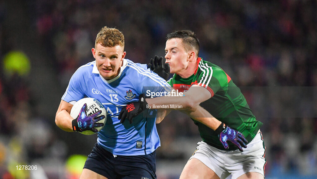 4 March 2017; Ciarán Kilkenny of Dublin in action against Stephen Coen of Mayo during the Allianz Football League Division 1 Round 4 match between Dublin and Mayo at Croke Park in Dublin. Photo by Brendan Moran/Sportsfile