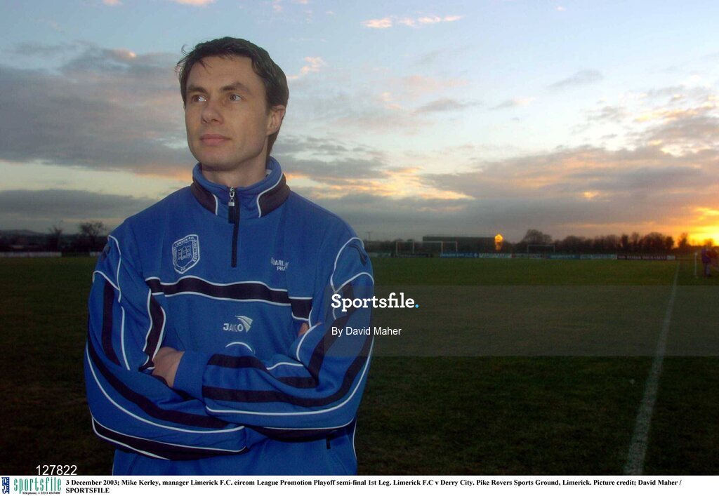 3 December 2003; Mike Kerley, manager Limerick F.C. eircom League Promotion Playoff semi-final 1st Leg. Limerick F.C v Derry City. Pike Rovers Sports Ground, Limerick. Picture credit; David Maher / SPORTSFILE