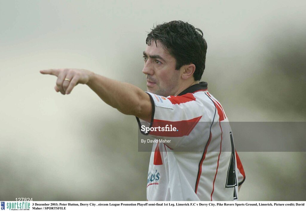 3 December 2003; Peter Hutton, Derry City . eircom League Promotion Playoff semi-final 1st Leg. Limerick F.C v Derry City. Pike Rovers Sports Ground, Limerick. Picture credit; David Maher / SPORTSFILE
