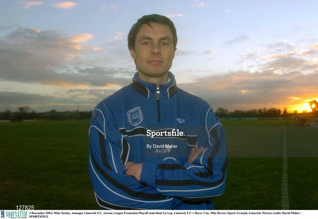 3 December 2003; Mike Kerley, manager Limerick F.C. eircom League Promotion Playoff semi-final 1st Leg. Limerick F.C v Derry City. Pike Rovers Sports Ground, Limerick. Picture credit; David Maher / SPORTSFILE