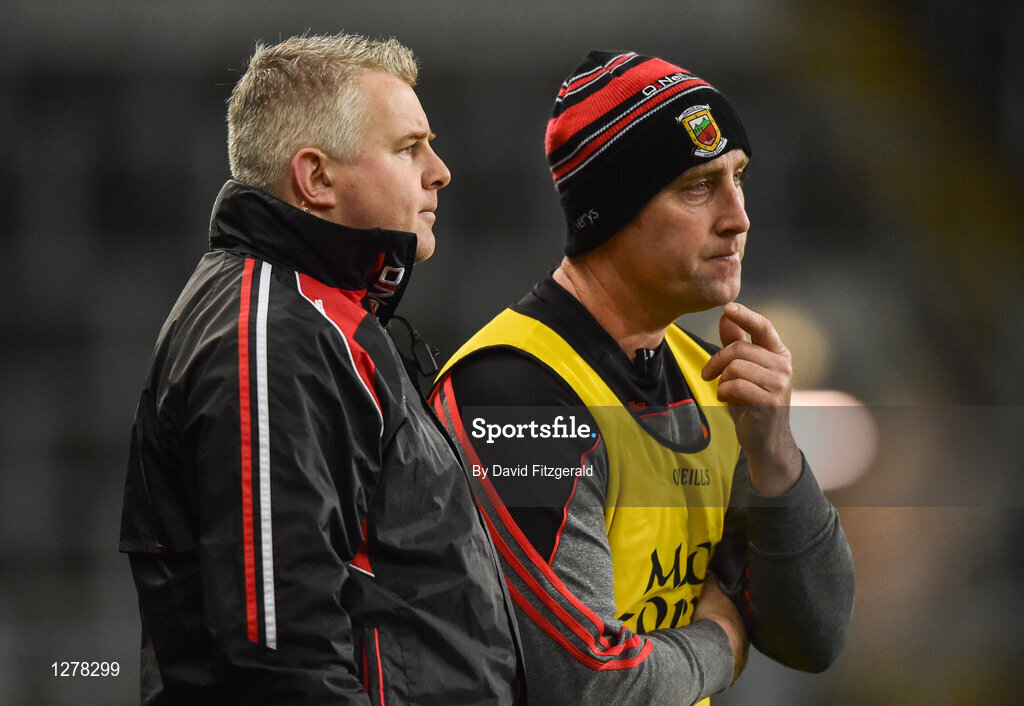 4 March 2017; Mayo manager Stephen Rochford, left, and Mayo selector Peter Burke during the Allianz Football League Division 1 Round 4 match between Dublin and Mayo at Croke Park in Dublin. Photo by David Fitzgerald/Sportsfile