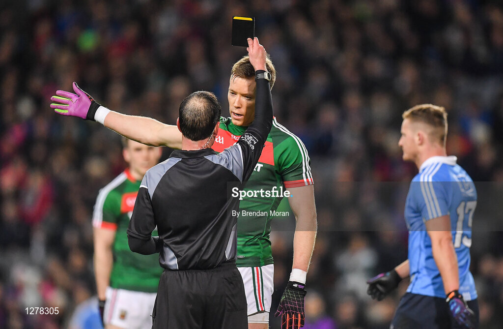 4 March 2017; Donal Vaughan of Mayo is shown a black card by referee David Coldrick during the Allianz Football League Division 1 Round 4 match between Dublin and Mayo at Croke Park in Dublin. Photo by Brendan Moran/Sportsfile