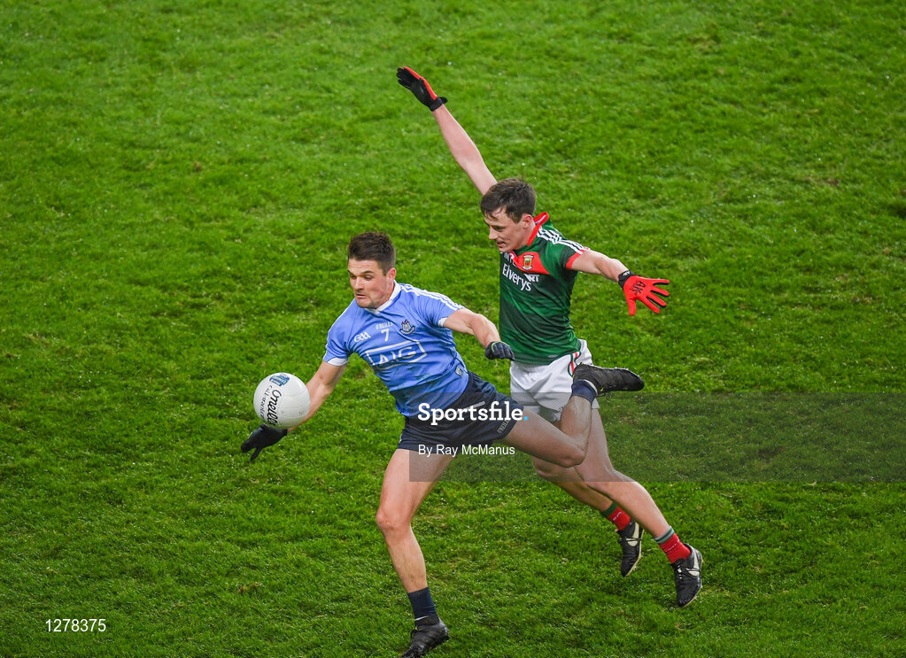4 March 2017; Eric Lowndes of Dublin in action against Diarmuid O'Connor of Mayo during the Allianz Football League Division 1 Round 4 match between Dublin and Mayo at Croke Park in Dublin. Photo by Ray McManus/Sportsfile