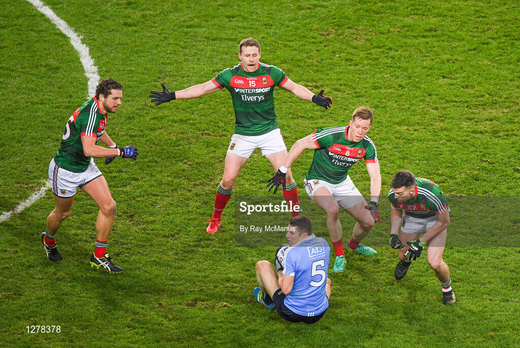 4 March 2017; Darren Daly of Dublin is surrounded by Mayo players, from left, Tom Parsons, Andy Moran, Donal Vaughan and Evan Regan during the Allianz Football League Division 1 Round 4 match between Dublin and Mayo at Croke Park in Dublin. Photo by Ray McManus/Sportsfile