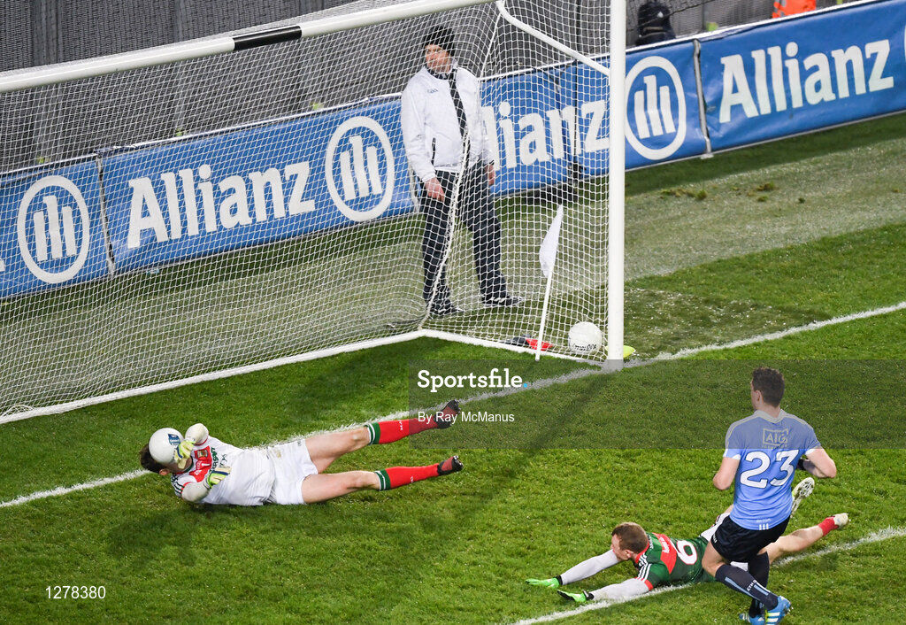 4 March 2017; Goalkeeper David Clarke of Mayo dives to his right to save a follow up kick from Dublin's Paddy Andrews who had his penalty kick saved seconds earlier during the Allianz Football League Division 1 Round 4 match between Dublin and Mayo at Croke Park in Dublin. Photo by Ray McManus/Sportsfile