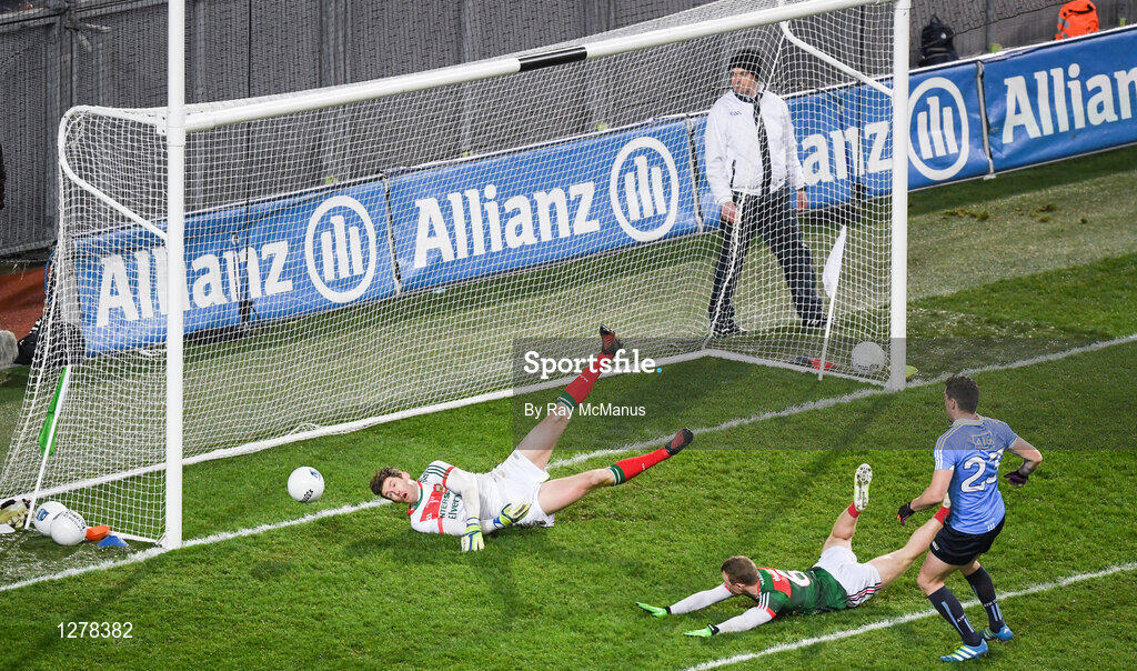 4 March 2017; Goalkeeper David Clarke of Mayo dives to his right to save a follow up kick from Dublin's Paddy Andrews who had his penalty kick saved seconds earlier during the Allianz Football League Division 1 Round 4 match between Dublin and Mayo at Croke Park in Dublin. Photo by Ray McManus/Sportsfile