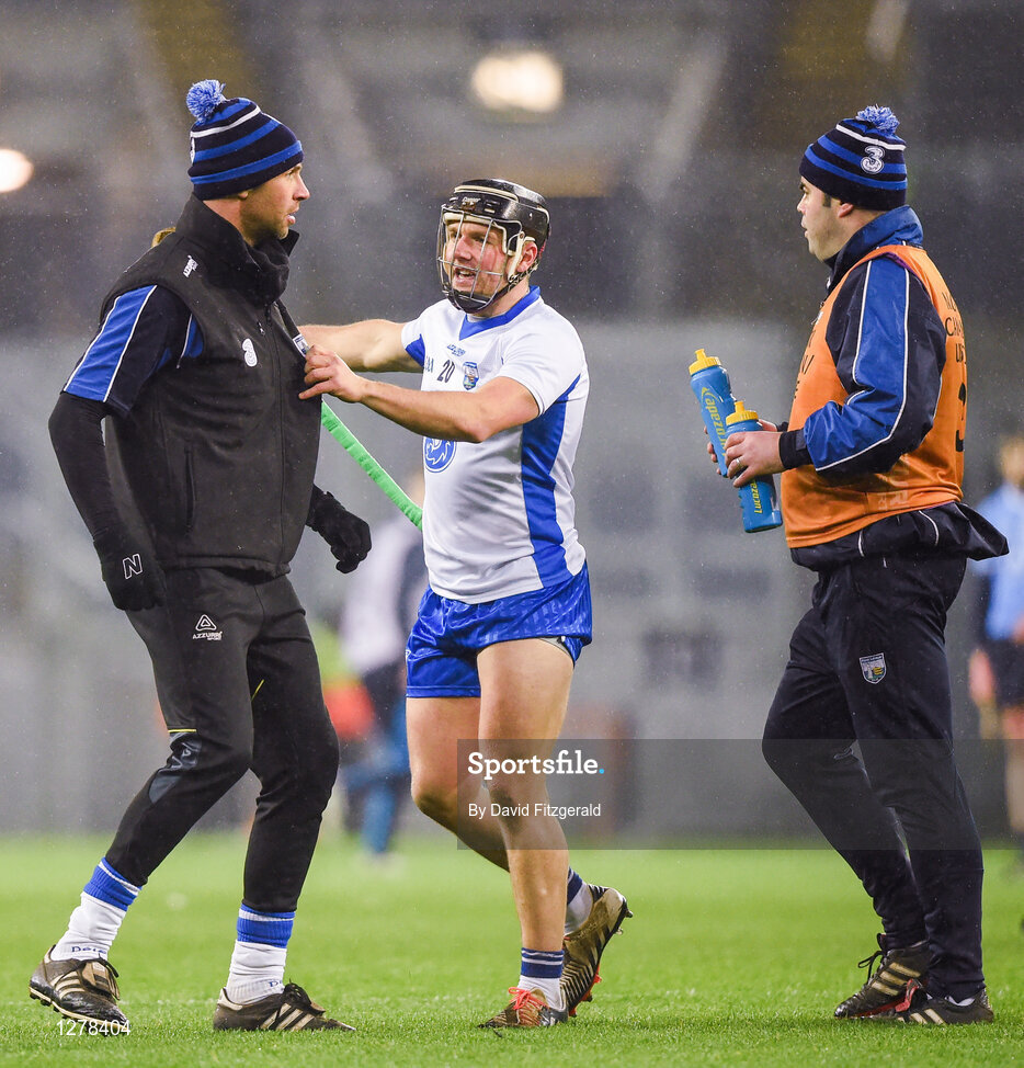 4 March 2017; Waterford selector Dan Shanahan speaks to Jake Dillon of Waterford on the field during the Allianz Hurling League Division 1A Round 3 match between Dublin and Waterford at Croke Park in Dublin. Photo by David Fitzgerald/Sportsfile