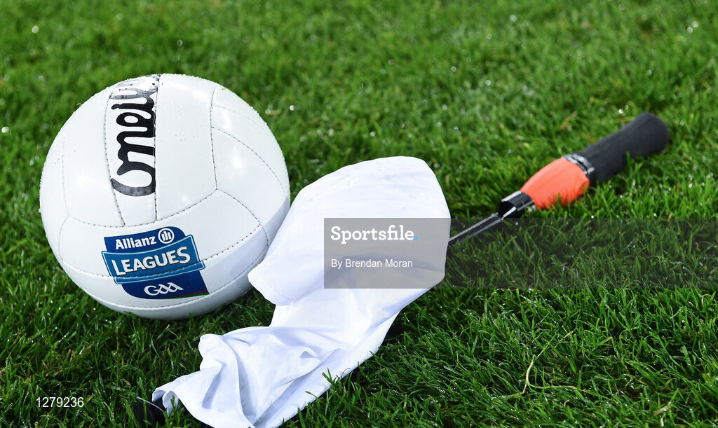 4 March 2017; A general view of an Allianz branded match ball and a linesman's flag prior to the Allianz Football League Division 1 Round 4 match between Dublin and Mayo at Croke Park in Dublin. Photo by Brendan Moran/Sportsfile