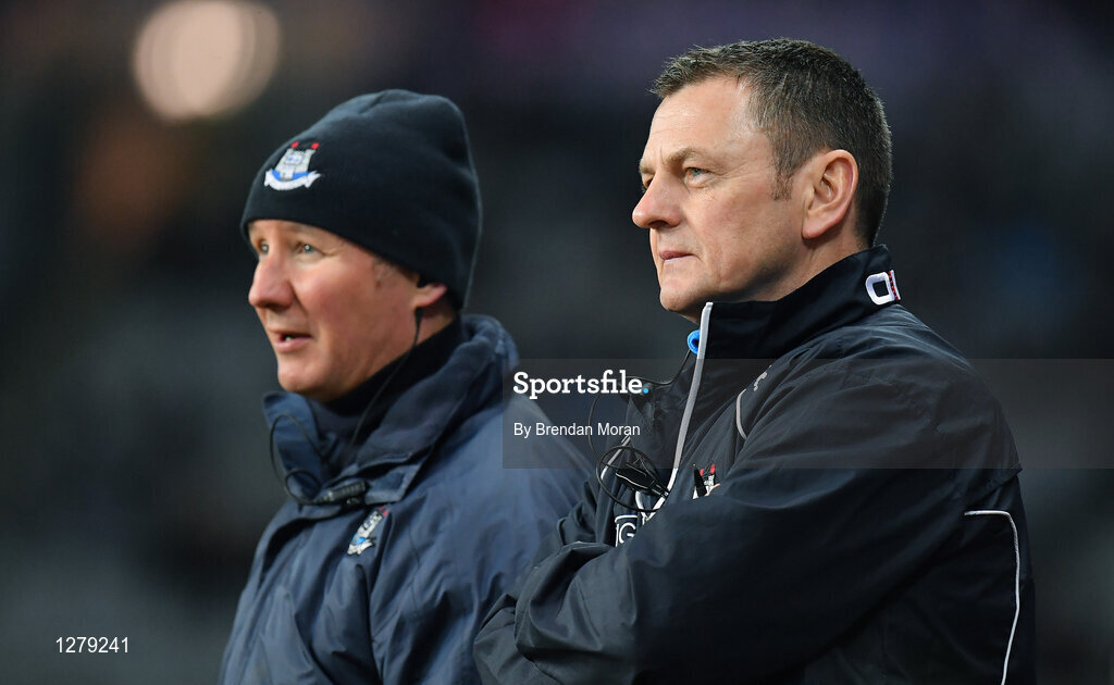 4 March 2017; Dublin senior football team media manager Seamus McCormack, right, alongside manager Jim Gavin, during the Allianz Football League Division 1 Round 4 match between Dublin and Mayo at Croke Park in Dublin. Photo by Brendan Moran/Sportsfile