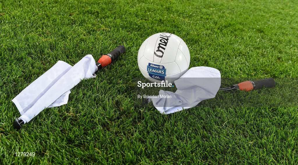 4 March 2017; A general view of an Allianz branded match ball and a linesman's flag prior to the Allianz Football League Division 1 Round 4 match between Dublin and Mayo at Croke Park in Dublin. Photo by Brendan Moran/Sportsfile