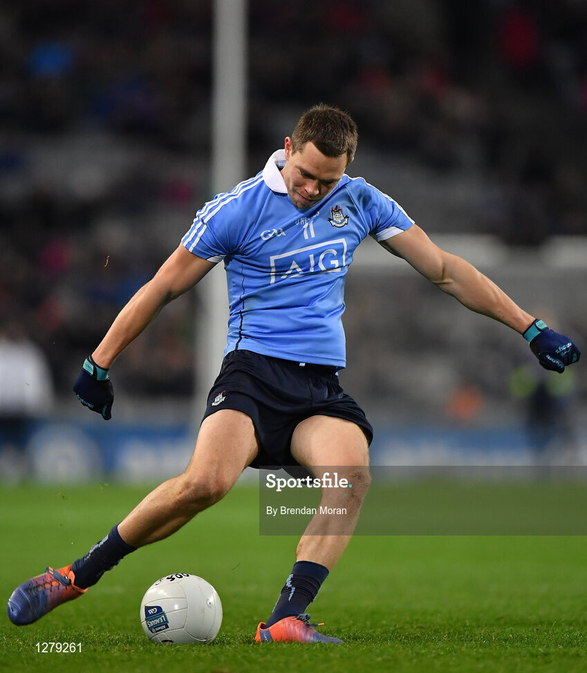 4 March 2017; Dean Rock of Dublin takes a free during the Allianz Football League Division 1 Round 4 match between Dublin and Mayo at Croke Park in Dublin. Photo by Brendan Moran/Sportsfile