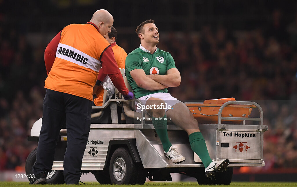 10 March 2017; Tommy Bowe of Ireland leaves the pitch with an injury during the RBS Six Nations Rugby Championship match between Wales and Ireland at the Principality Stadium in Cardiff, Wales. Photo by Brendan Moran/Sportsfile