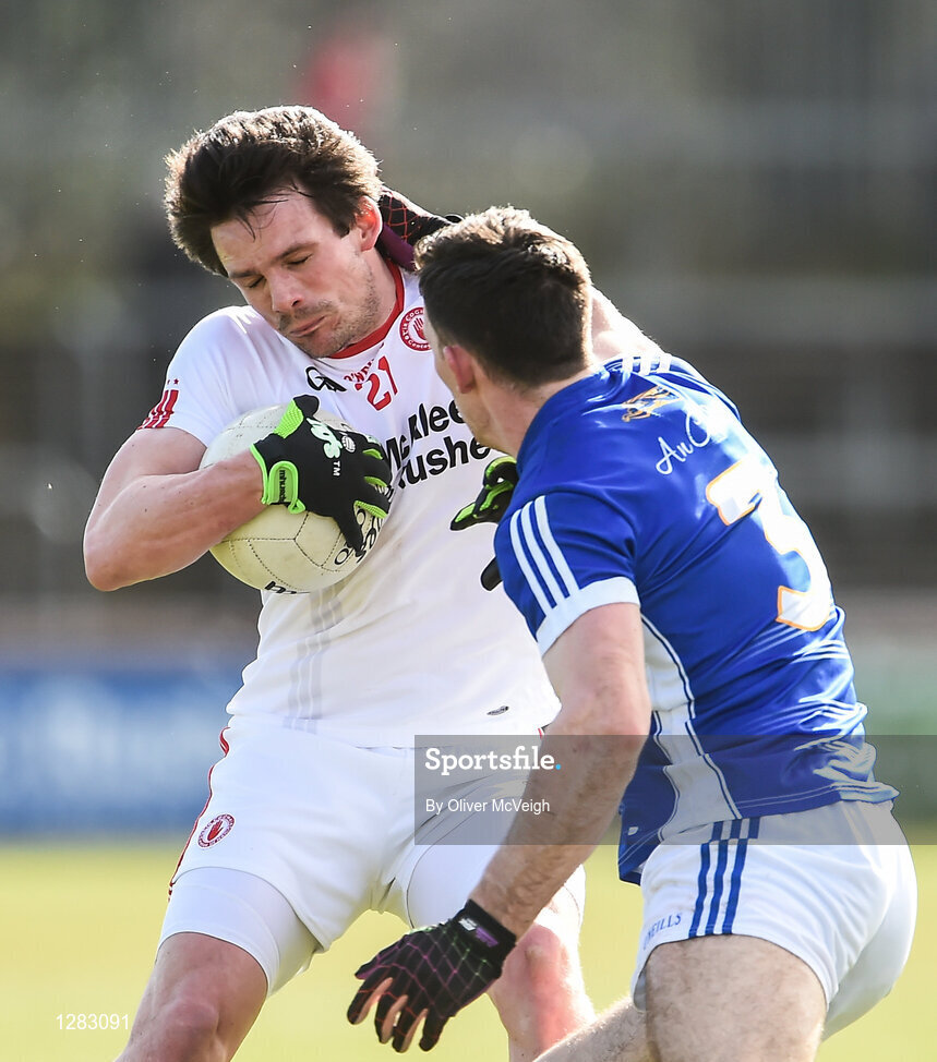 12 March 2017; Aidan McCrory of Tyrone in action against Killian Brady of Cavan during the Allianz Football League Division 1 Round 3 Refixture match between Tyrone and Cavan at Healy Park in Omagh, Co. Tyrone. Photo by Oliver McVeigh/Sportsfile