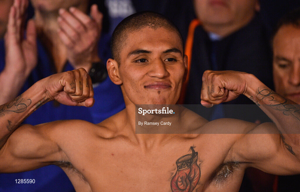 17 March 2017; David Carmona weighs in for his super flyweight bout against Carlos Cuadras at The Theater in Madison Square Garden in New York, USA. Photo by Ramsey Cardy/Sportsfile