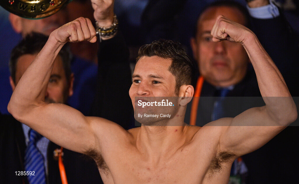 17 March 2017; Carlos Cuadras weighs in for his super flyweight bout against David Carmona at The Theater in Madison Square Garden in New York, USA. Photo by Ramsey Cardy/Sportsfile