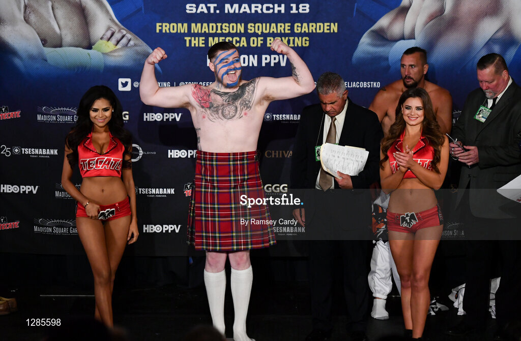 17 March 2017; Jay McFarlane weighs in for his heavyweight bout against Matt McKinney at The Theater in Madison Square Garden in New York, USA. Photo by Ramsey Cardy/Sportsfile