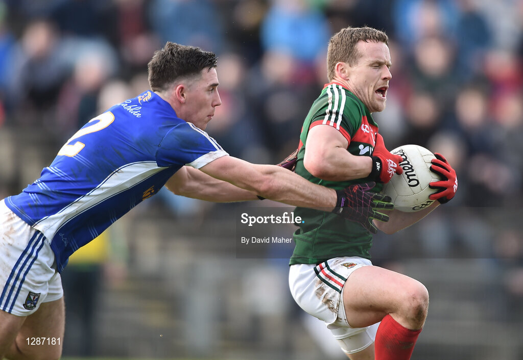 19 March 2017; Andy Moran of Mayo in action against Killian Brady of Cavan during the Allianz Football League Division 1 Round 5 match between Mayo and Cavan at Elverys MacHale Park in Castlebar, Co Mayo. Photo by David Maher/Sportsfile