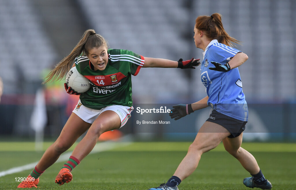 25 March 2017; Sarah Rowe of Mayo in action against Sinead O'Mahony of Dublin during the Lidl Ladies Football National League Round 6 match between Dublin and Mayo at Croke Park, in Dublin. Photo by Brendan Moran/Sportsfile