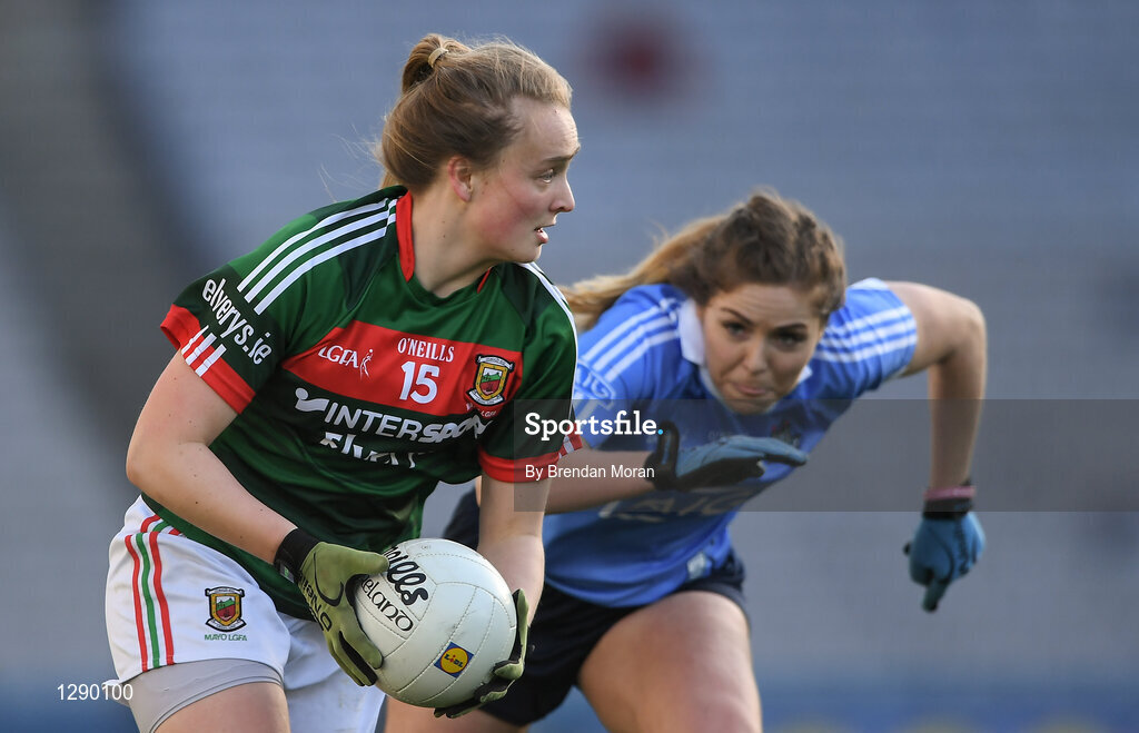 25 March 2017; Shauna Howley of Mayo in action against Sinéad Finnegan of Dublin during the Lidl Ladies Football National League Round 6 match between Dublin and Mayo at Croke Park, in Dublin. Photo by Brendan Moran/Sportsfile
