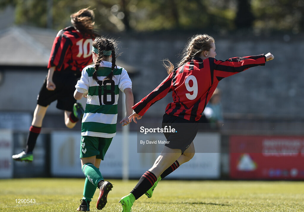 26 March 2017; Saoirse Healy of Cregmore Claregalway FC celebrates after scoring her side's first goal during the FAI Women's U14 Cup Final match between Cregmore Claregalway and Kilmore Celtic at Eamon Deacy Park in Galway. Photo by David Maher/Sportsfile