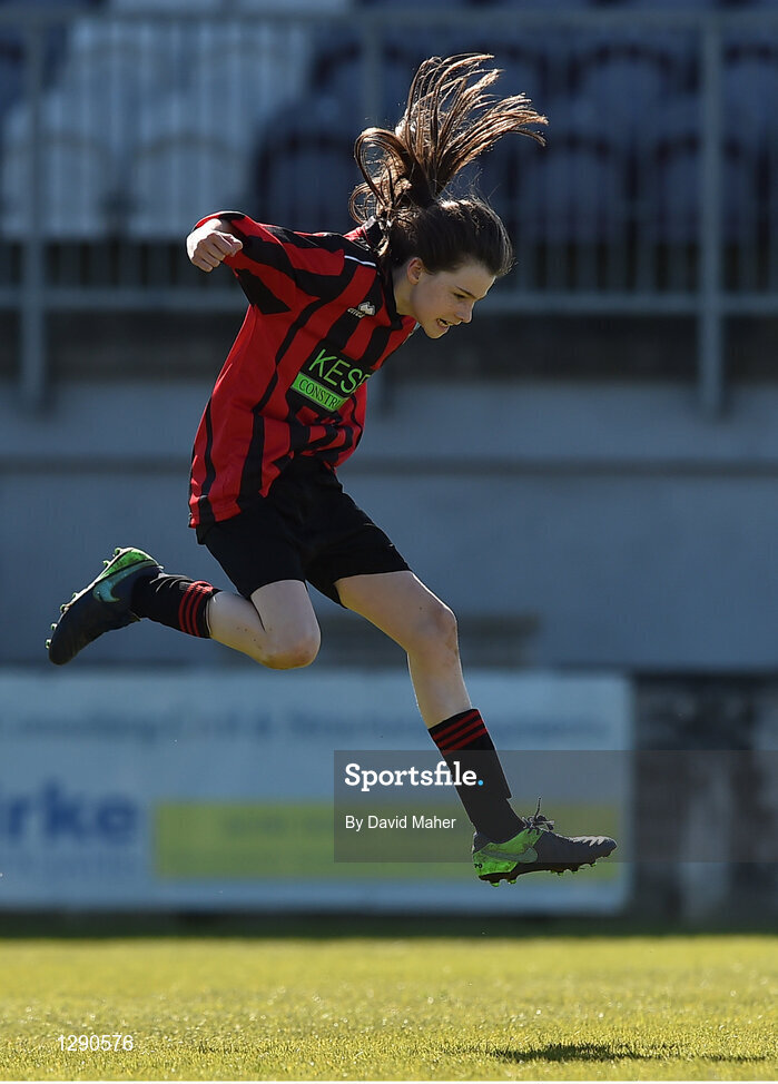 26 March 2017; Aoibheann Costello of Cregmore Claregalway FC celebrates after scoring her side's third goal during the FAI Women's U14 Cup Final match between Cregmore Claregalway and Kilmore Celtic at Eamon Deacy Park in Galway. Photo by David Maher/Sportsfile