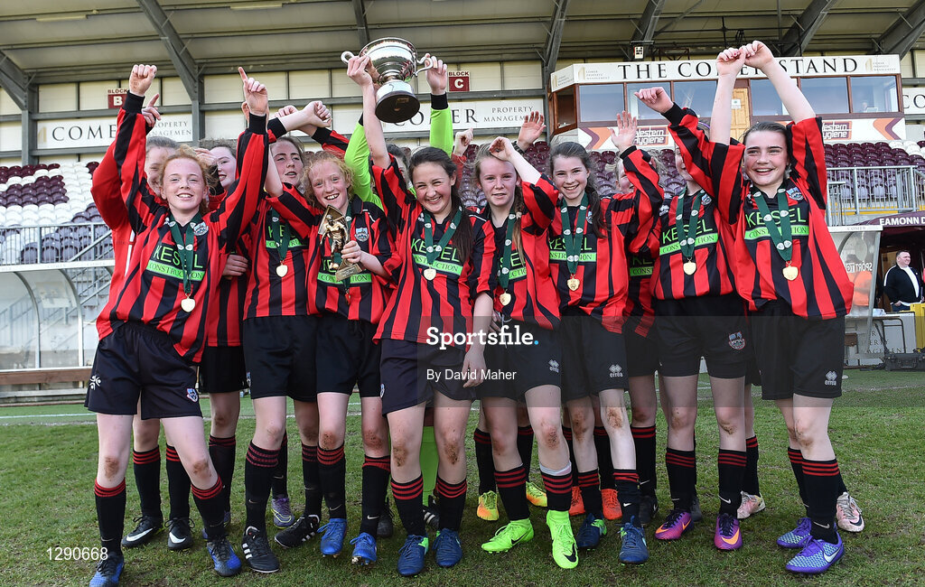 26 March 2017; Players of Cregmore Claregalway celebrate at the end of the FAI Women's U14 Cup Final match between Cregmore Claregalway and Kilmore Celtic at Eamon Deacy Park in Galway. Photo by David Maher/Sportsfile