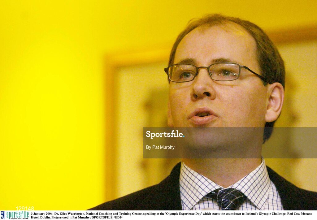 3 January 2004; Dr. Giles Warrington, National Coaching and Training Centre, speaking at the 'Olympic Experience Day' which starts the countdown to Ireland's Olympic Challenge. Red Cow Morans Hotel, Dublin. Picture credit; Pat Murphy / SPORTSFILE *EDI*