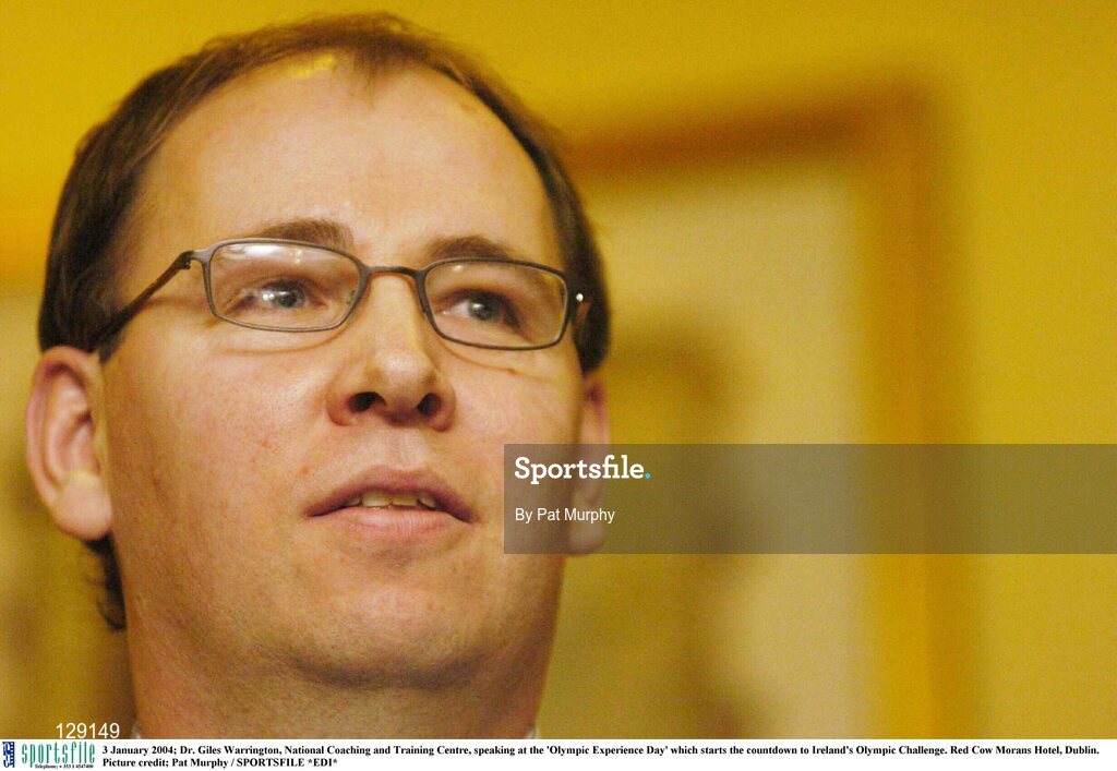 3 January 2004; Dr. Giles Warrington, National Coaching and Training Centre, speaking at the 'Olympic Experience Day' which starts the countdown to Ireland's Olympic Challenge. Red Cow Morans Hotel, Dublin. Picture credit; Pat Murphy / SPORTSFILE *EDI*