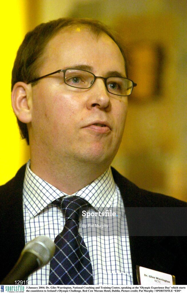 3 January 2004; Dr. Giles Warrington, National Coaching and Training Centre, speaking at the 'Olympic Experience Day' which starts the countdown to Ireland's Olympic Challenge. Red Cow Morans Hotel, Dublin. Picture credit; Pat Murphy / SPORTSFILE *EDI*