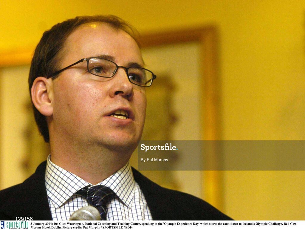 3 January 2004; Dr. Giles Warrington, National Coaching and Training Centre, speaking at the 'Olympic Experience Day' which starts the countdown to Ireland's Olympic Challenge. Red Cow Morans Hotel, Dublin. Picture credit; Pat Murphy / SPORTSFILE *EDI*