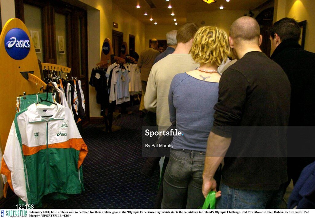 3 January 2004; Irish athletes wait to be fitted for their athletic gear at the 'Olympic Experience Day' which starts the countdown to Ireland's Olympic Challenge. Red Cow Morans Hotel, Dublin. Picture credit; Pat Murphy / SPORTSFILE *EDI*