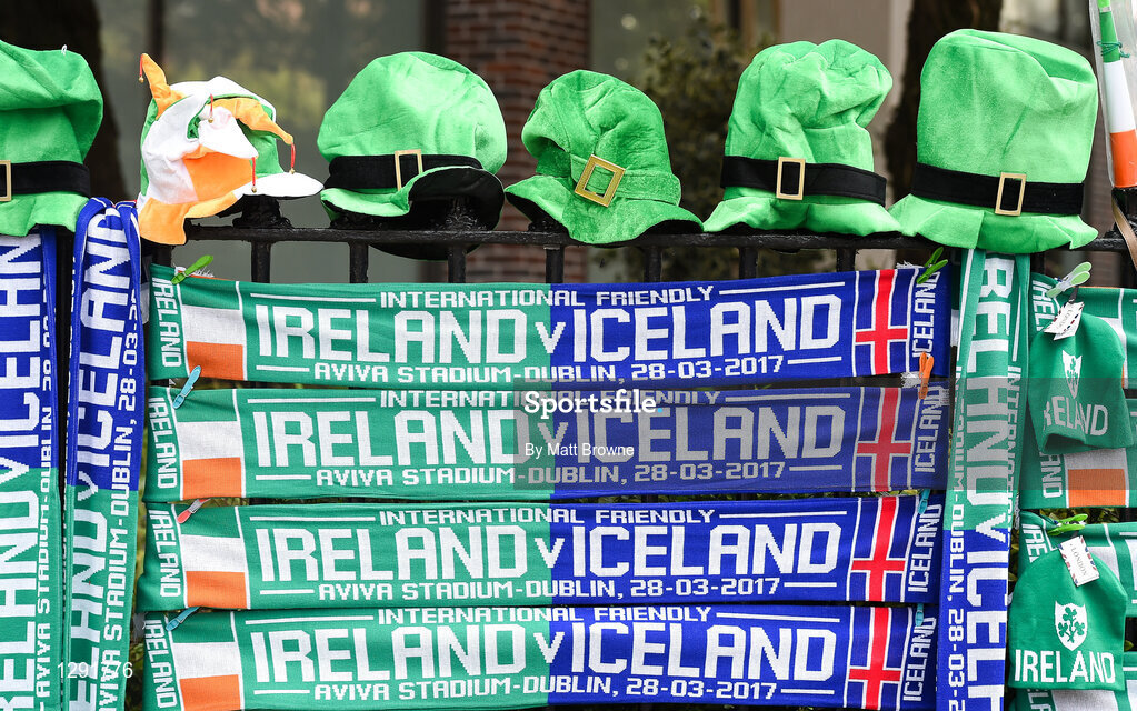 28 March 2017; A general view of Republic of Ireland and Iceland scarves before the International Friendly match between the Republic of Ireland and Iceland at the Aviva Stadium in Dublin. Photo by Matt Browne/Sportsfile