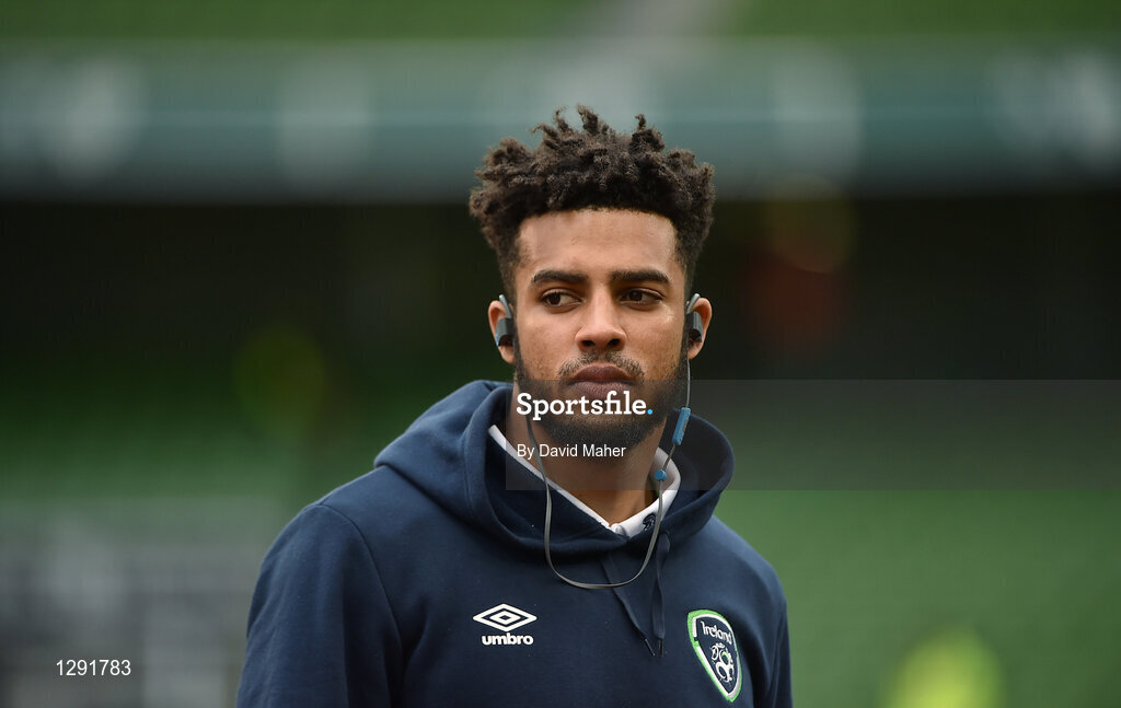 28 March 2017; Cyrus Christie of Republic of Ireland before the warm-up prior to the International Friendly match between the Republic of Ireland and Iceland at the Aviva Stadium in Dublin. Photo by David Maher/Sportsfile