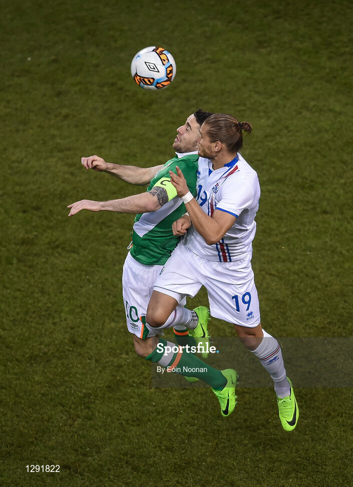 28 March 2017; Robbie Brady of Republic of Ireland in action against Rurik Gislason of Iceland during the International Friendly match between the Republic of Ireland and Iceland at the Aviva Stadium in Dublin. Photo by Eóin Noonan/Sportsfile