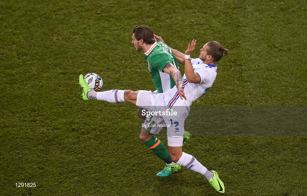 28 March 2017; Jeff Hendrick of Republic of Ireland in action against Rurik Gislason of Iceland during the International Friendly match between the Republic of Ireland and Iceland at the Aviva Stadium in Dublin. Photo by Eóin Noonan/Sportsfile