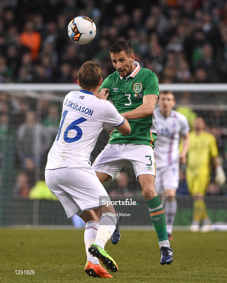 28 March 2017; Conor Hourihane of Republic of Ireland in action against Olafur Ingi Skulsaon of Iceland during the International Friendly match between the Republic of Ireland and Iceland at the Aviva Stadium in Dublin. Photo by David Maher/Sportsfile